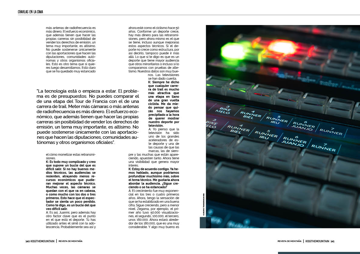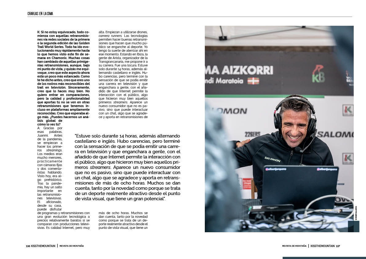 K: Me gustaría ir concluyendo ya. Quizás tengamos que darle a esta charla continuidad más adelante, pero antes, me gustaría preguntarte por qué no se ven las carreras en la televisión convencional. Recuerdo hace unos años disfrutar la Zegama en TVE. ¿Por qué ocurre esto? No sé si aparte de responderme a esta cuestión, te gustaría añadir algo más.