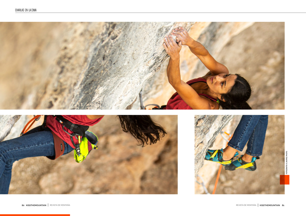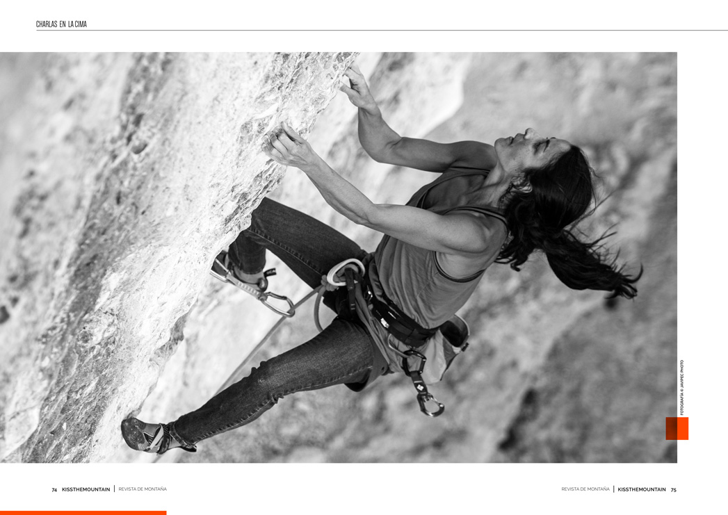 K: Lo que más admiro de vosotros es la parte mental de poder estar mucho tiempo probando una vía dura hasta encadenarla. Semanas, meses, dándole pegues hasta que encadenas. Me transmite una fortaleza mental sobre lo que estáis haciendo impresionante.