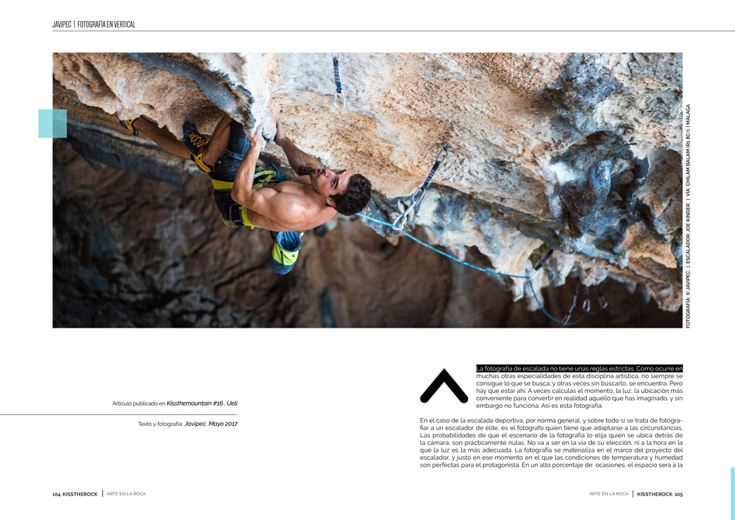 La fotografía de escalada no tiene unas reglas estrictas. Como ocurre en muchas otras especialidades de esta disciplina artística, no siempre se consigue lo que se busca, y otras veces sin buscarlo, se encuentra. Pero hay que estar ahí. A veces calculas el momento, la luz, la ubicación más conveniente para convertir en realidad aquello que has imaginado, y sin embargo no funciona. Así es esta fotografía.