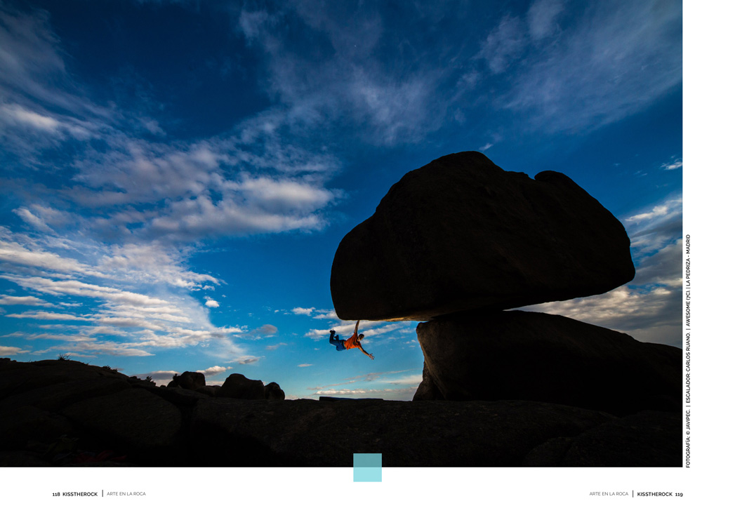 También me gusta fotografiar el boulder. Este tipo de escalada permite una mayor creatividad. Al practicarse en rocas de menor altura y sin cuerda, se pueden buscar ubicaciones y ángulos diferentes. La libertad de movimientos es mucho mayor. Además es posible recurrir a otros elementos como son los flashes externos. Todo esto con mucha más facilidad que si tienes que estar colgado de una cuerda, y además con la posibilidad de que el escalador repita o intente repetir un determinado movimiento.