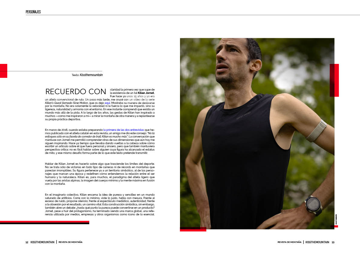 En marzo de 2018, cuando estaba preparando la primera de las dos entrevistas que hemos publicado con el atleta catalán en esta revista, un amigo me dio este consejo: “No la enfoques sólo en su faceta de corredor de trail; Kilian es mucho más”. La conversación que mantuve con Jornet me permitió comprender otras de sus dimensiones que aún hoy me siguen inspirando. Hace ya tiempo que llevaba dando vueltas a la cabeza sobre cómo escribir un artículo sobre él que fuera personal y sincero, pero que también mantuviera perspectiva crítica: no es fácil hablar sobre alguien cuya figura ha alcanzado el estatus de mito, y ese mismo desafío forma parte de lo que este texto pretende transmitir.