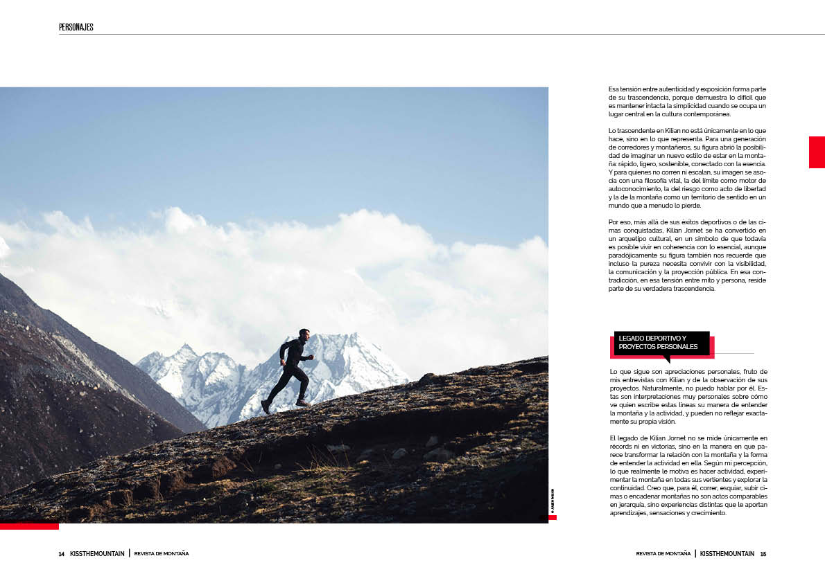 Lo trascendente en Kilian no está únicamente en lo que hace, sino en lo que representa. Para una generación de corredores y montañeros, su figura abrió la posibilidad de imaginar un nuevo estilo de estar en la montaña: rápido, ligero, sostenible, conectado con la esencia. Y para quienes no corren ni escalan, su imagen se asocia con una filosofía vital, la del límite como motor de autoconocimiento, la del riesgo como acto de libertad y la de la montaña como un territorio de sentido en un mundo que a menudo lo pierde.