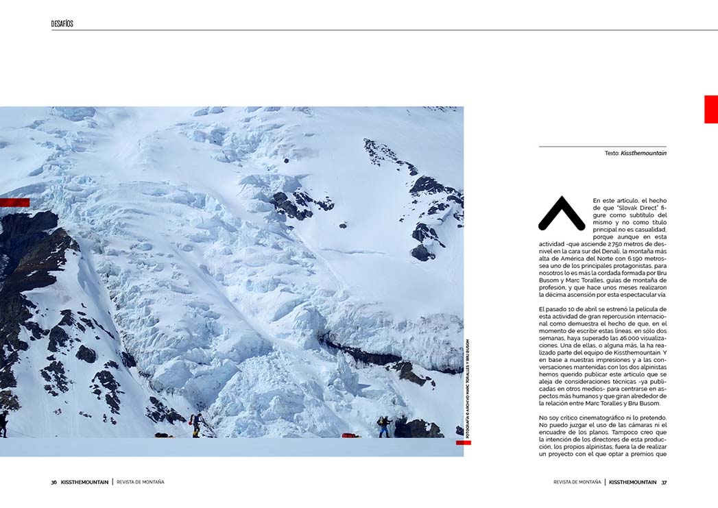 En este artículo, el hecho de que “Slovak Direct” figure como subtítulo del mismo y no como título principal no es casualidad, porque aunque en esta actividad -que asciende 2.750 metros de desnivel en la cara sur del Denali, la montaña más alta de América del Norte con 6.190 metros- sea uno de los principales protagonistas, para nosotros lo es más la cordada formada por Bru Busom y Marc Toralles, guías de montaña de profesión, y que hace unos meses realizaron la décima ascensión por esta espectacular vía.