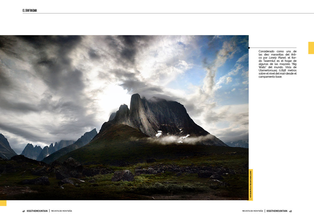 Considerado como una de las diez maravillas del Ártico por Lonely Planet, el fiordo Tasermiut es el hogar de algunas de las mayores “Big Walls” del mundo. Vista de Ulamertorsuaq (1.858 metros sobre el nivel del mar) desde el campamento base.