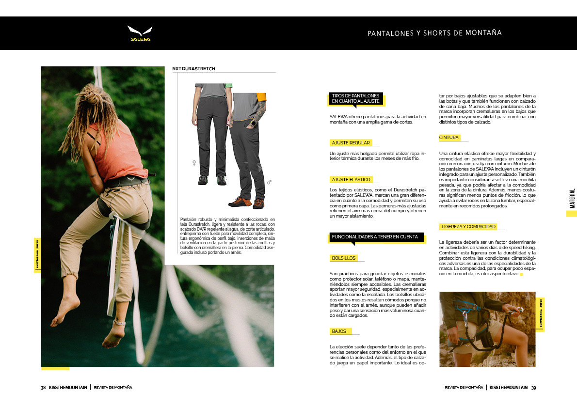 La montaña es un espacio de libertad. Los que acudimos a ella elegimos nuestro propio camino. En unos casos, realizamos actividades propias del senderismo en las que nuestro único objetivo es sentirnos en conexión con la naturaleza mientras disfrutamos de las pequeñas y grandes cosas que esta nos ofrece; en otros, nos gusta avanzar con ligereza y rapidez en esa disciplina llamada speed hiking que de alguna manera fusiona el senderismo tradicional con ciertas dosis de trail running; a veces, estas actividades nos exigen superar complicaciones técnicas y, sin darnos cuenta, comenzamos a utilizar medios de progresión más relacionados con el alpinismo o la escalada. Cada una de estas disciplinas es diferente, aunque tienen en común el deseo de disfrutar de aquello que más nos gusta en esos entornos que nos hacen sentir más vivos. Tanto es así que quizás no sea necesario dar un nombre a aquello que practicamos ya que, al fin y al cabo, se trata simplemente de sentir y descubrir el verdadero viaje que nos transforma por dentro, más cuando las fronteras entre las distintas disciplinas cada vez están más difuminadas. Probablemente, una de las marcas que más se adapta a estas reflexiones sea SALEWA. En su catálogo, encontramos equipamiento, ropa y calzado que en unos casos es muy especializado para una determinada actividad, mientras que en otros mandan la versatilidad y la funcionalidad. Es el caso de los pantalones de montaña. En este artículo, intentaremos dar ciertas claves que nos ayuden a elegir unos u otros.