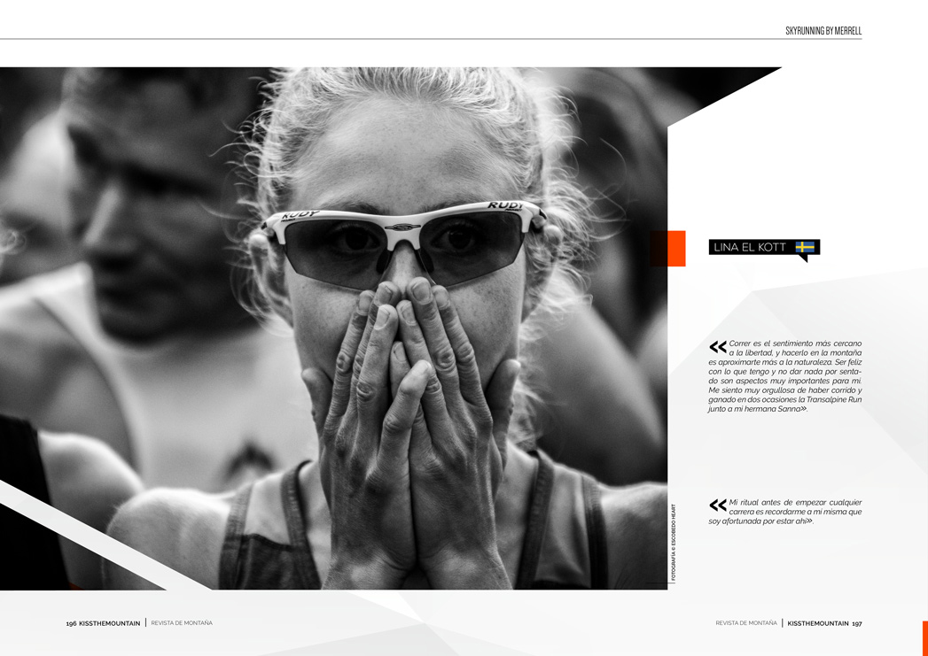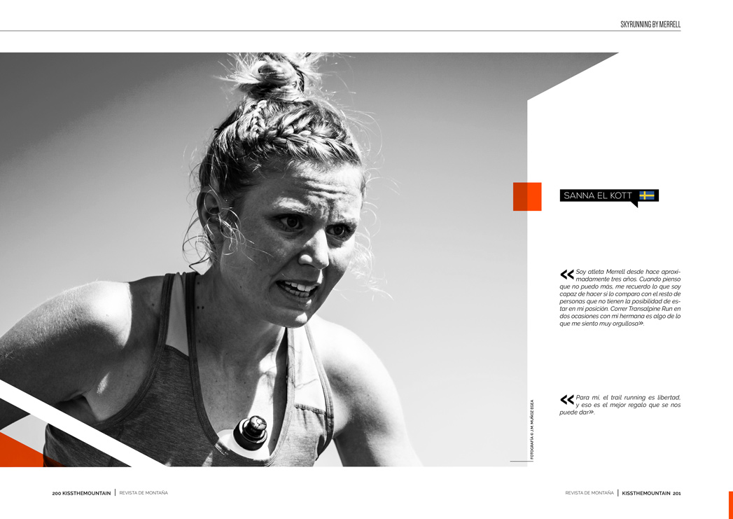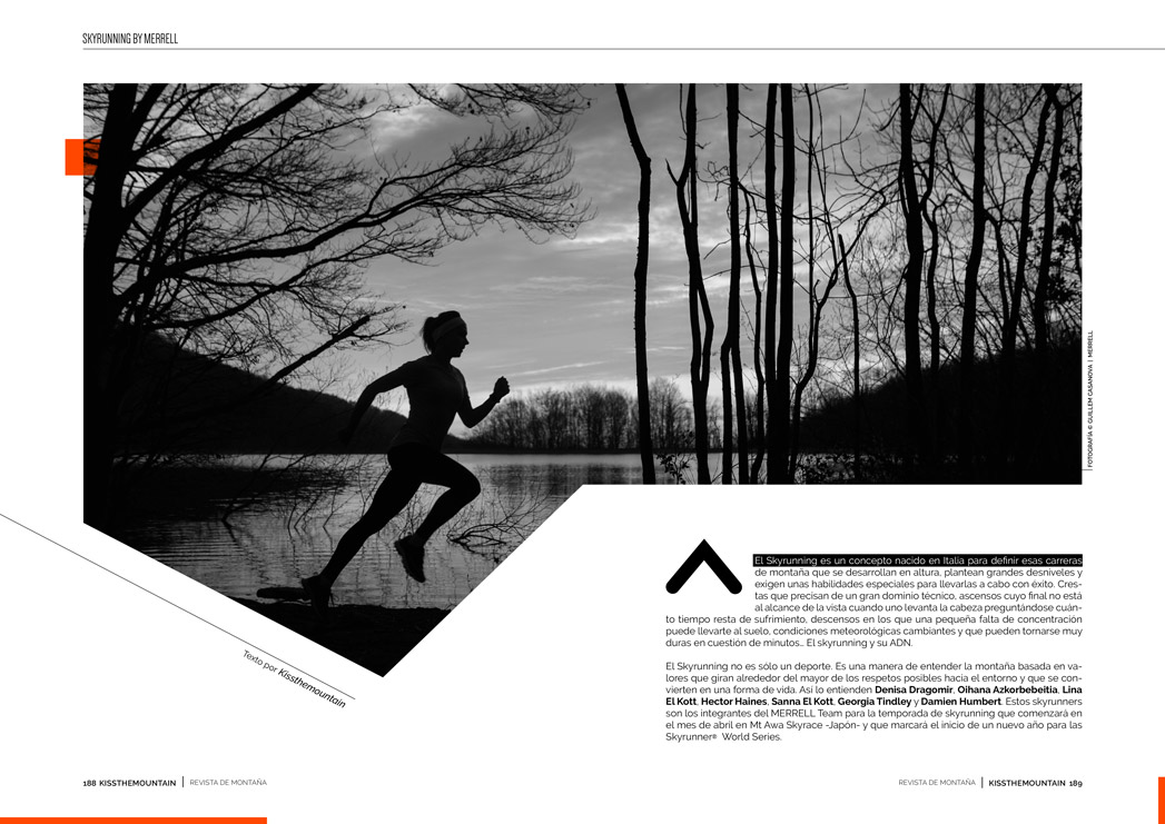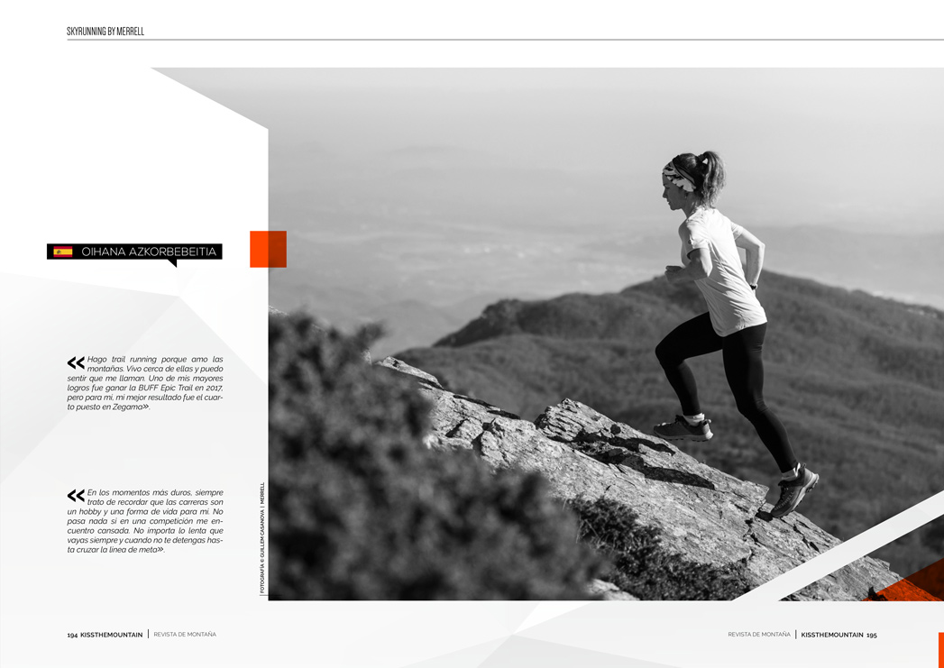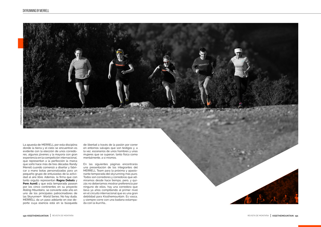 En las siguientes páginas encontrarás una presentación de los integrantes del MERRELL Team para la próxima y apasionante temporada del skyrunning más puro. Todos son corredores y corredoras que admiramos desde hace tiempo, pero, y quizás no deberíamos mostrar preferencia por ninguno de ellos, hay una corredora que lleva ya años compitiendo al primer nivel en el circuito internacional que es una gran debilidad para Kissthemountain. Es vasca, y siempre corre con una badana estampada con la ikurriña…