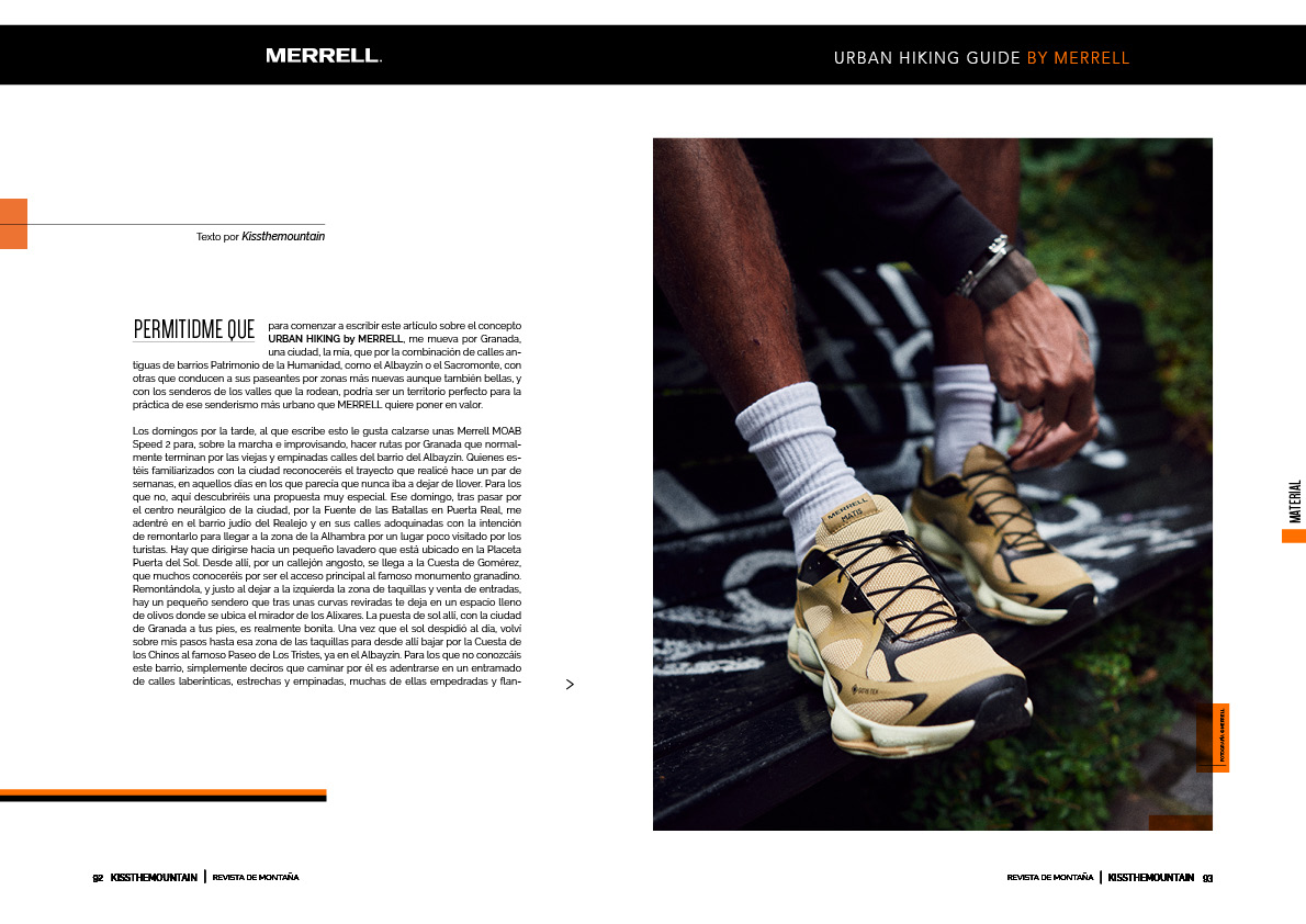 Permitidme que para comenzar a escribir este artículo sobre el concepto URBAN HIKING by MERRELL, me mueva por Granada, una ciudad, la mía, que por la combinación de calles antiguas de barrios Patrimonio de la Humanidad, como el Albayzín o el Sacromonte, con otras que conducen a sus paseantes por zonas más nuevas aunque también bellas, y con los senderos de los valles que la rodean, podría ser un territorio perfecto para la práctica de ese senderismo más urbano que MERRELL quiere poner en valor.
