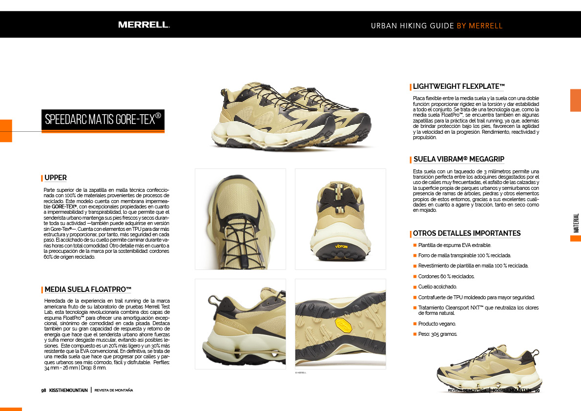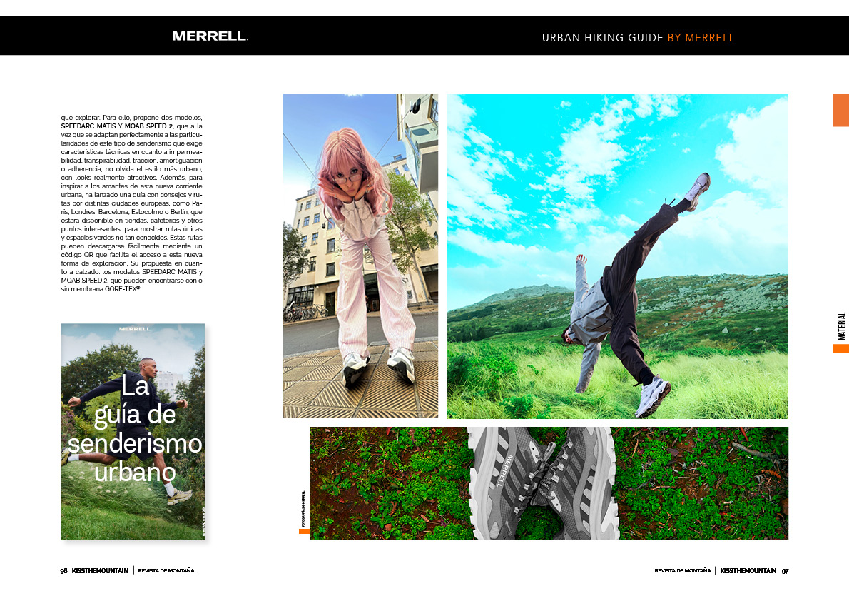 Merrell, la reconocida marca americana de calzado outdoor, lanza una innovadora iniciativa, URBAN HIKING GUIDE, pensada para aquellos que, como a mí, nos gusta dejarnos llevar por los entornos de las ciudades buscando rincones menos conocidos que prácticamente transforman el paisaje urbano en senderos que explorar. Para ello, propone dos modelos, SPEEDARC MATIS Y MOAB SPEED 2, que a la vez que se adaptan perfectamente a las particularidades de este tipo de senderismo que exige características técnicas en cuanto a impermeabilidad, transpirabilidad, tracción, amortiguación o adherencia, no olvida el estilo más urbano, con looks realmente atractivos. Además, para inspirar a los amantes de esta nueva corriente urbana, ha lanzado una guía con consejos y rutas por distintas ciudades europeas, como París, Londres, Barcelona, Estocolmo o Berlín, que estará disponible en tiendas, cafeterías y otros puntos interesantes, para mostrar rutas únicas y espacios verdes no tan conocidos. Estas rutas pueden descargarse fácilmente mediante un código QR que facilita el acceso a esta nueva forma de exploración. Su propuesta en cuanto a calzado: los modelos SPEEDARC MATIS y MOAB SPEED 2, que pueden encontrarse con o sin membrana GORE-TEX®.